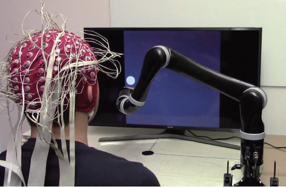卡耐基梅隆大学和明尼苏达大学的研究人员提出了非入侵式脑机接口的机械臂控制。基于头皮脑电,通过连续的追踪任务和相关的训练范式增加用户的参与度,显著改善了基于脑电的神经解码效率,且允许用户对机械臂实现高分辨率控制,实现对连续随机运动目标的实时跟踪。这种高质量的神经解码能力与非侵入式机械臂控制的实际应用相结合,将对利用非侵入式脑机接口开发和实现神经机器人技术产生重大影响。