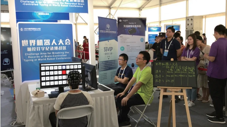 除上述提及的侵入式脑机接口实现语言交流功能外,非侵入式脑机接口在此方面也展现出较大潜力。2019年4月,在《挑战不可能》节目中,清华大学研究团队展示了一套脑机接口打字输入系统,该系统展示了帮助渐冻症群体重拾交流能力的潜力。