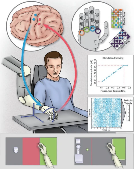 美国巴特尔纪念研究所及合作研究团队从初级运动皮层活动反映的运动意图中提取出患者残余的、无法被患者知觉感知的手部触觉信号,并将该信号进行增强后反馈给患者,从而实现皮层内控制的闭环感觉反馈,并可通过触摸信号调节握力,以实现触觉和运动功能的同时恢复。这项研究表明,脑机接口可以从大脑皮层采集低于知觉反应范围的神经号,并将其转换为有意识的知觉,从而显著增强功能。