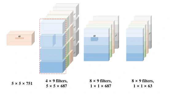 通过通道选择,下采样等操作最后将数据固定为适合模型输入的形状(5,5,750),实验数据总共有三种类别(上臂、前臂、手)
