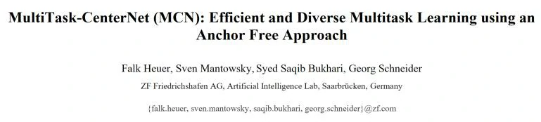 <Heuer F, Mantowsky S, Bukhari S S, et al. MultiTask-CenterNet (MCN): Efficient and Diverse Multitask Learning using an Anchor Free Approach[J]. arXiv preprint arXiv:2108.05060, 2021. >