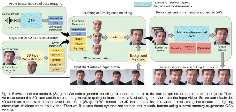 [1] Yi R , Ye Z , Zhang J , et al. Audio-driven Talking Face Video Generation with Learning-based Personalized Head Pose[J]. 2020.