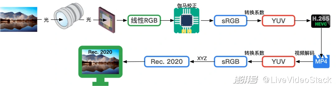 因此,对于拍摄设备和显示设备的色域不同时,视频的播放增加了色彩管理的过程。
