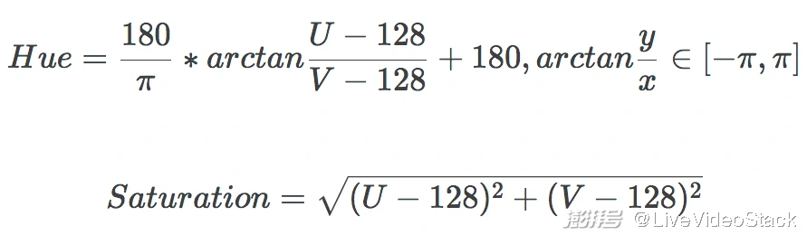 signalstats计算色调、饱和度的算法如下所示: