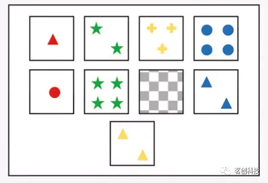 要求被试根据卡片的颜色、数量或形状进行分类堆放,让对被试对分类堆放后获得的反馈发现规则。在连续进行10次正确分类后,改变分类规则。这个任务是共有4张位于屏幕上方的刺激卡片和128张反应卡片,每张卡片的大小为8cm*8cm,卡片上分别以红、绿、蓝、黄4种颜色,画有1~4个三角形、星形、十字形或圆形。其中4张刺激卡分别画有1个红三角、2个绿星、三个黄十字、4个蓝圆的图片,按上述顺序放于卡片盒上方。分类原则由计算机设定(颜色、数量或形状),需要被试不断尝试、分析、推理找到计算机设定的分类原则。