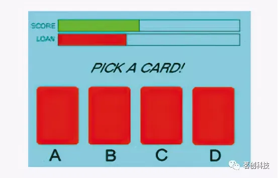 要求被试学会在拥有不同奖励/损失回报的A-D牌组中进行选择。纸牌A:每次给100美元的奖励,但是连续10次中会有5次35~150美元的惩罚;纸牌B:每次给的奖励是100美元,但是连续10次中有一次1250美元的惩罚;纸牌C:每次给50美元的奖励,但连续10次中有5次是25~75美元的惩罚;纸牌D:每次给50美元的奖励,但连续10次中有一次250美元的惩罚。在任务开始前,被试不知道纸牌中奖励惩罚的数量,频率等情况,只是被告知每次任意从4副纸牌中选择1张,以达到选择多次以后赢分尽可能多的目的。