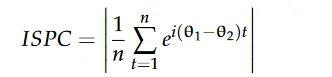 ISPC反映了给定电极对之间的相位角差异在极性空间中的聚类程度, 其具有相对较高的时间精确度,并能为连通性的调节提供相对有力的证据。参照以下公式计算两个电极之间 的ISPC :
