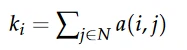 给定节点的连接数称为节点度。寻找网络枢纽是一种直观的方法。利用以下方程计算节点度,其中ki为节点i的度,a(i, j)为节点i和j之间的节点状态,N为网络中所有节点的集合。
