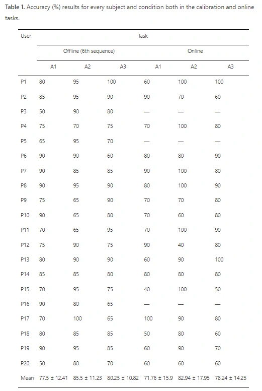 23名健康被试,所有人先前都没有听觉BCI的经验,其中3人由于未完成实验被排除。研究最终包含了20个被试(年龄在23.1±5.66岁,其中12名女性,8名男性),在实验中被称为P1到P20。