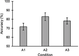 相较于单独的刺激(A1),将可理解内容作为背景可以改善流方法的听觉BCI性能。另一方面,将目标刺激伪装在背景内容中(A3)使得被试能够更好地忽略非目标刺激。但同时也更难感知到目标刺激,所以在实验中没有得到预期的效果。