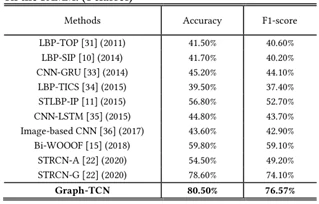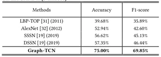 - 设计了一种新型的Graph-TCN网络来提取微表情局部肌肉运动的特征,实现了对图结构的自主学习而不需要手工设计。
