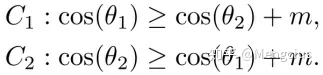 - CosFace:additive cosine margin,让cos(θ)加上m,m是cosine margin,余弦空间上。注意图2的坐标轴是cos(θ)