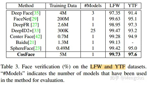 - LFW上99.73%,YTF上97.6%,角度间隔损失系列首次超越FaceNet。数据集使用了多个公开数据集和一个私有数据集共500万张9万个人