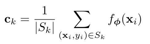 其中Sk表示类k,|Sk|表示类k中样本的数量,(xi , yi)为样本的特征向量和标记,此公式实际上为一个求平均的过程。