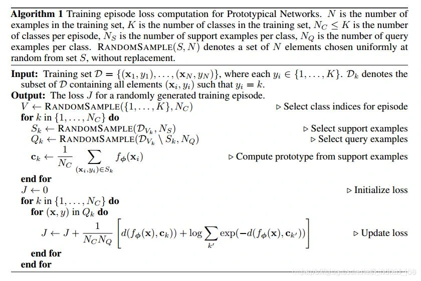 计算过程:为Episode选择类别 → 选择支持集 → 选择训练集 → 计算支持集的原型 → 初始化损失 → 更新损失