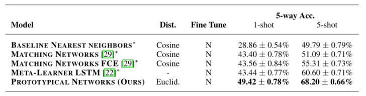 论文的实验部分中也在不同数据集上进行了两种网络的效果比较,结果显示P-net的效果要优于M-net。本论文提出的原型网络方法虽然结构设计比较简单,但是却能达到很好的效果,这为我们在解决小样本分类问题时提供了一种可行的解决思路。