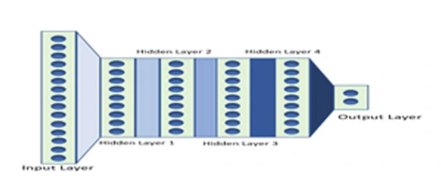 文献提出的深度神经网络由4个隐含层组成,如图1所示,每层包含60个神经元。输入层神经元数量为HbO/HbR和EEG通道数之和。输出层由两个、三个或四个单元组成,这个取决于实验中类的数量,同时soft-max激活表示类上的概率分布。这个架构是在试验了几种不同的架构(窄的和宽的)后选择的。