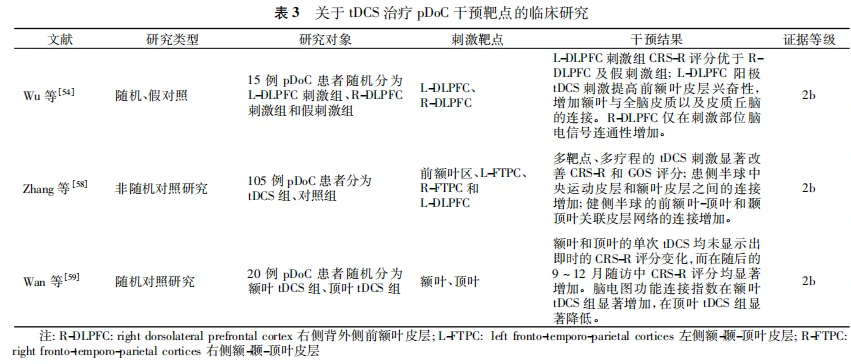 随着重症救治等技术的快速发展,因重度脑损伤导致的昏迷患者存活率大大提高,随之而来的难题是慢性意识障碍(pDoC)患者的不断增多。目前对于pDoC,神经调控技术被认为是极具潜力的新兴治疗手段。其中,经颅直流电刺激(tDCS) 被认为是 pDoC 治疗中具有重要价值的无创神经调控技术之一。但是国内尚缺乏tDCS治疗pDoC的专家共识,存在高质量循证医学证据不足、治疗靶点及疗程不统一、各治疗靶点疗效不一等问题。