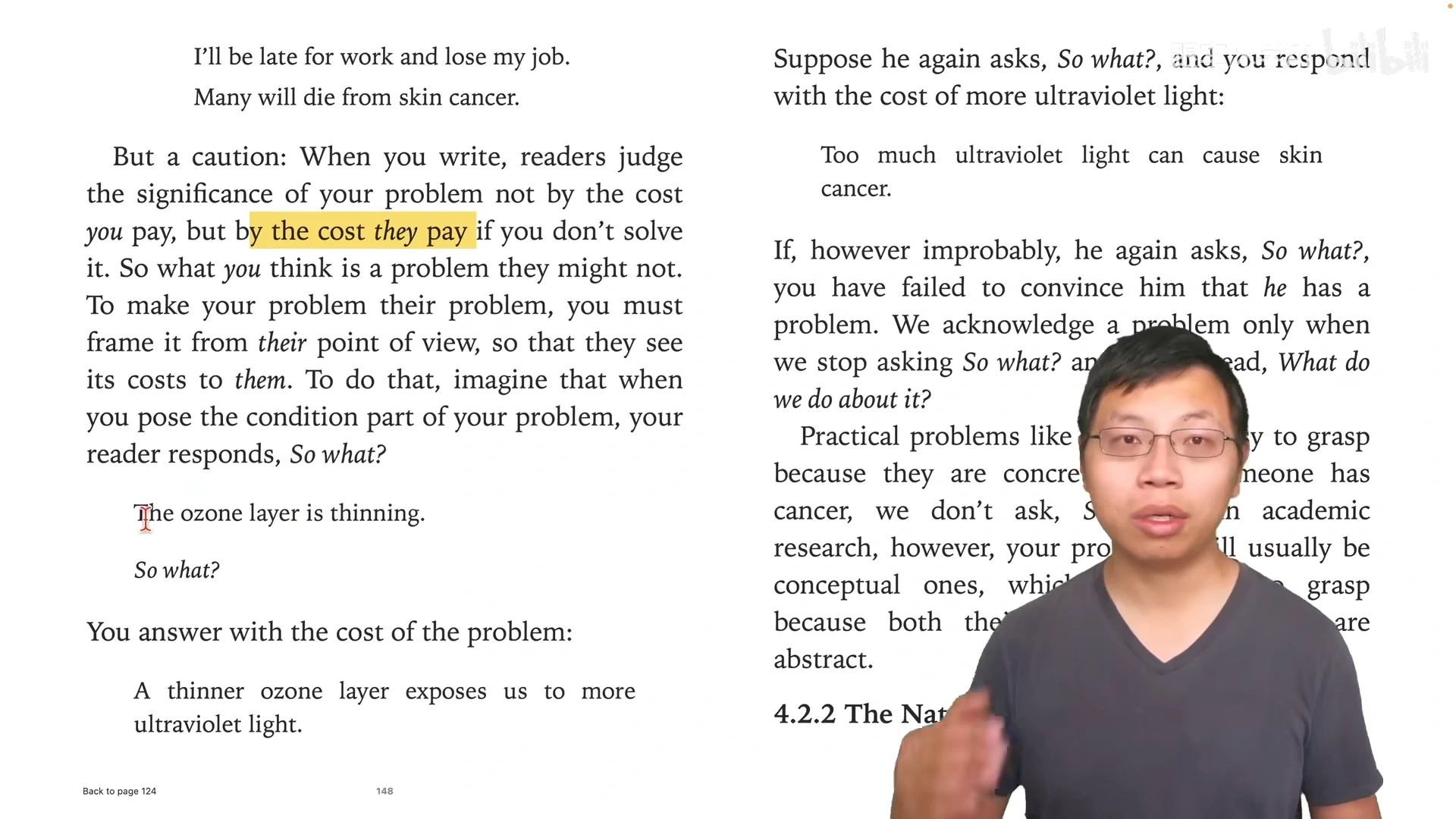 怎么样从读者的角度去找出这样子的代价:从自己的状况开始不断的问so what