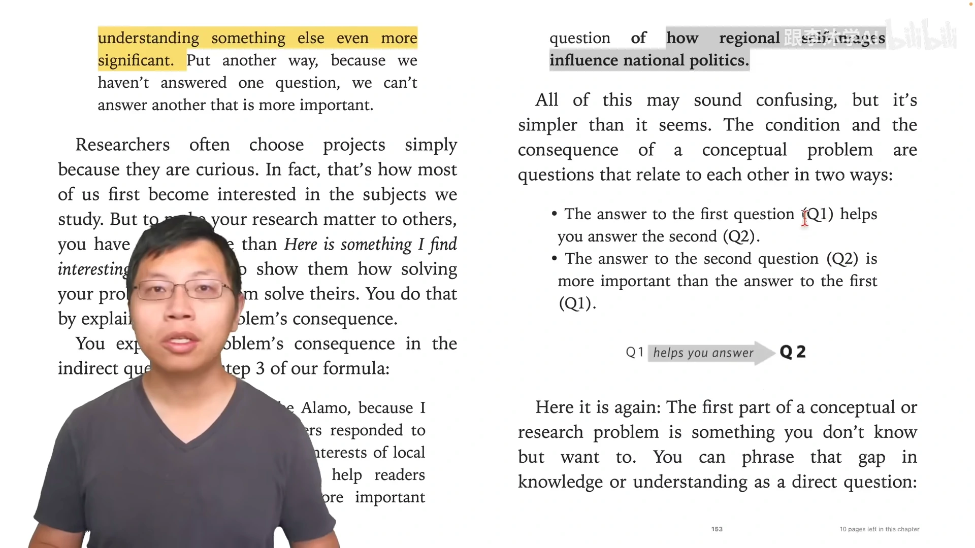 作者画了幅图来说明:我们去了解我们的第一个问题(研究要去回答的问题)能帮助我们了解一个更大的一个问题,就是从Q1 一直到Q2,只要Q2足够大而且确实是能过去的话,那么这还是有价值的。
