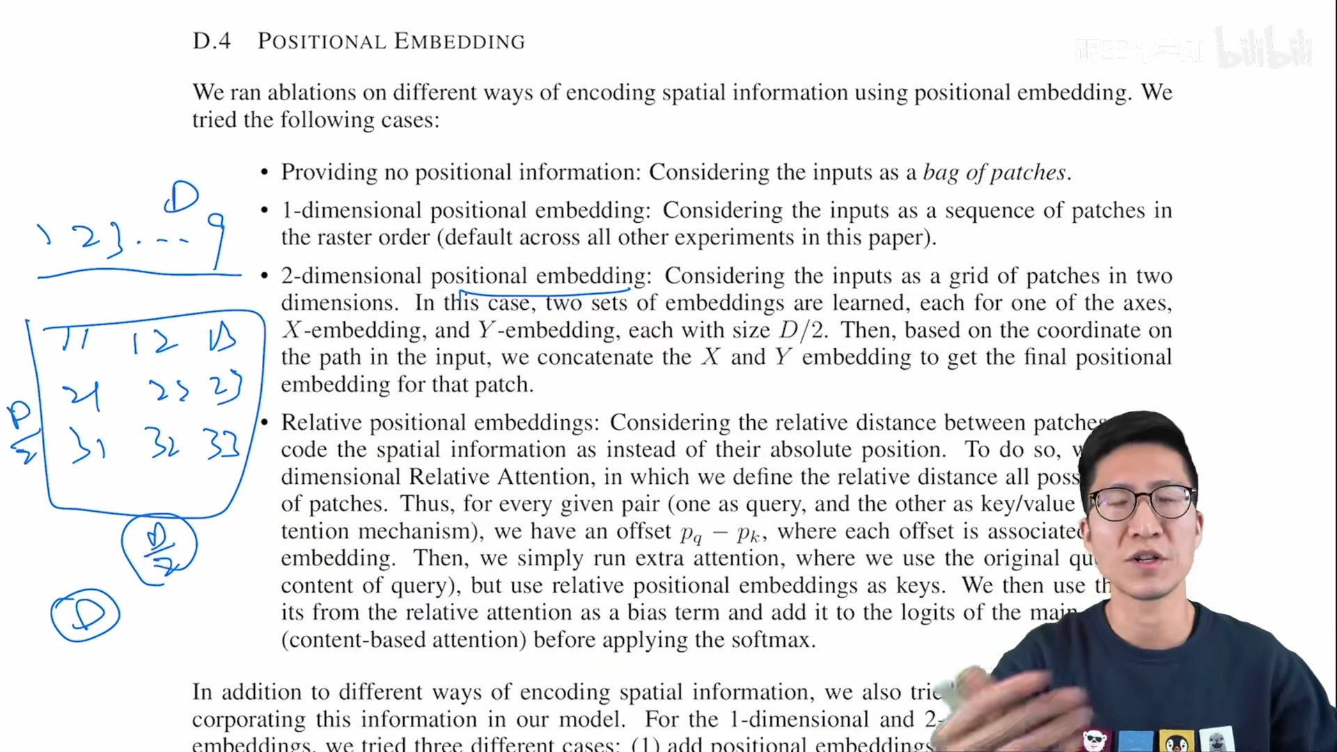虽然是 1d 的 position embedding,但已经学到了 2d 的图像位置概念;所以换成 2d position 提升不多。