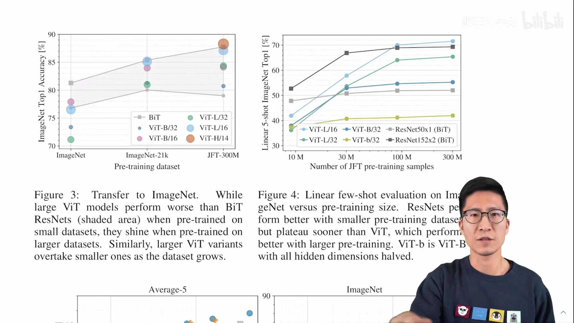 ViT 图4 效果 和 图3 差不多。如何用 ViT 做小样本学习,未来研究方向之一。