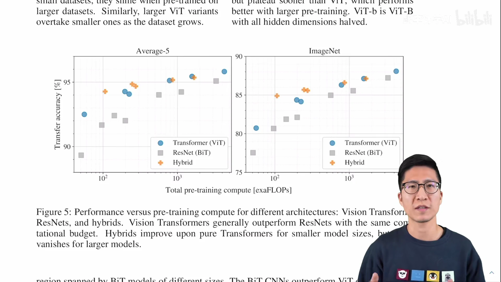 同等计算复杂度:ViT 比 ResNet 效果好,印证了 ViT 训练更便宜