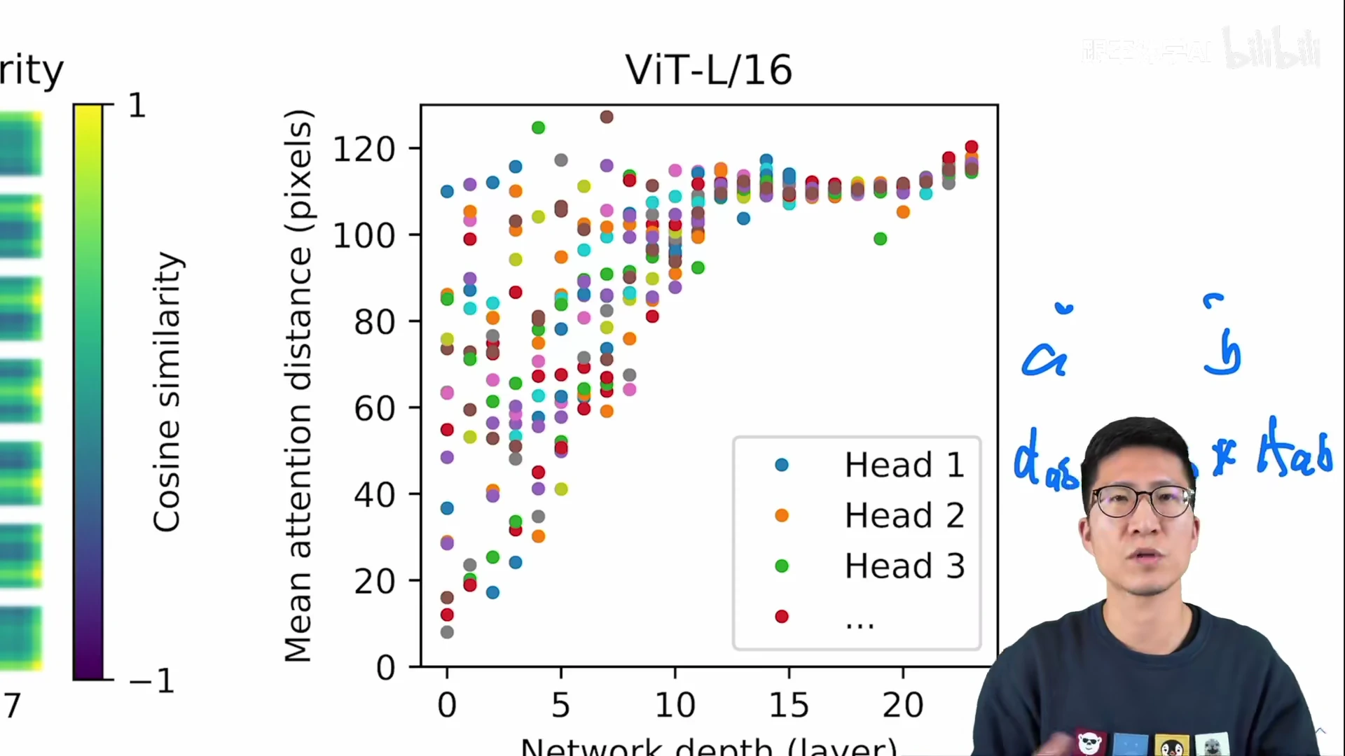 d_ab 的大小,反映模型能不能注意到很远的 2 个 pixels