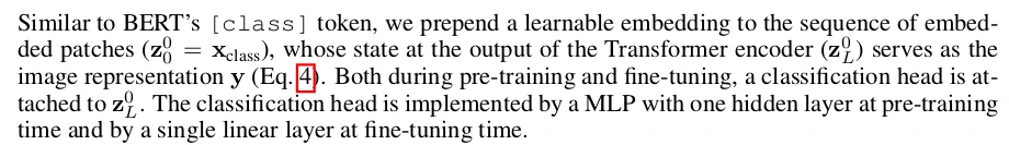 上图中,带*号的粉色框是一个可学习的embedding,记住Xclass,经过encoder后的结果作为整张图像的表示。之所以不用其中一个patch的embedding是因为,这种embedding不可避免带有path的信息,而新增的这个没有语义信息,能更佳反映整张图片。