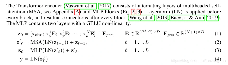 每一个 patch 经过一个 FC layer(fully connected layer)得到一个 linear embedding,patches 的 linear embeddings 是 Transformer 的输入。