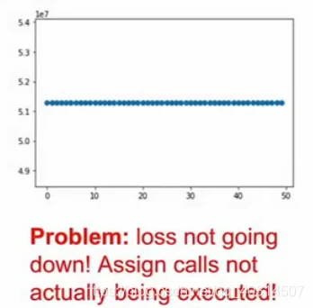 但是这里有一个bug,如果我们运行这个代码,把loss打印出来,发现它并没有进行训练: