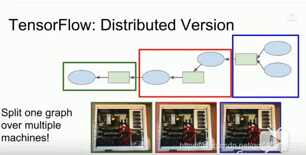 我们可以在tf中添加一些代码,从而使用tensorboard画出训练过程中的loss曲线和其他一些内容。tf也可以分布式运行,可以将一张计算图图分块,从而在不同的计算机上运行,目前进行分布式运行,tf是最合适地选择
