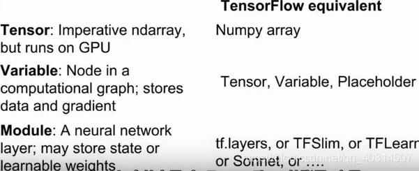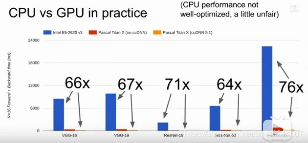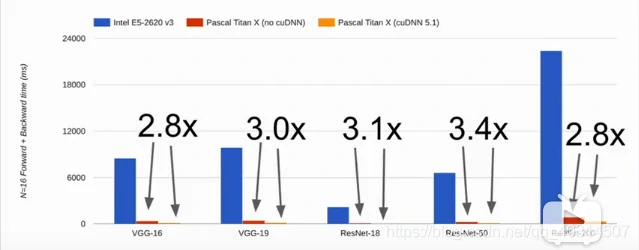 这些东西可以高效地在GPU上运行,我们不用关注一些底层的硬件上的细节,像cuBLAS,cuDNN,CUDA以及数据在CPU和GPU内存之间的移动。