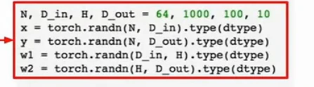 我们只使用了张量而没使用numpy完成了两层神经网络,首先建立一些随机数据: