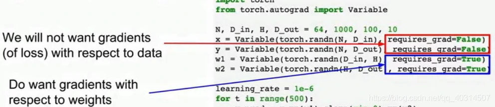 当我们建立了变量,每一次对变量的构造器的调用,都封装了一个张量 ,并且设置了一个二值的标记,告诉构造器我们需不需要计算在该变量上的梯度。