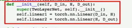 在类的初始化操作时,我们分配了linear1和linear2,建立新的模块对象,然后存在类中