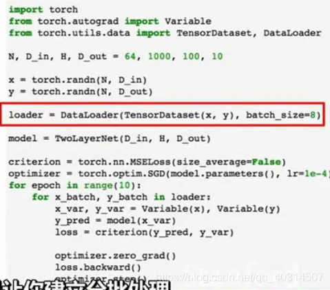 一个dataloader可以建立分批处理,也可以执行上面提到的多线程,它可以用多线程在后台来建立很多批处理和硬盘加载,所以dataloader可以打包数据