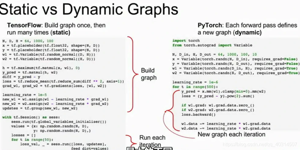 pytorch和tensorflow最大的不同是静态图和动态图。