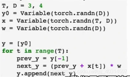 在pytorch中我们可以不关心输入序列的大小,只希望计算相同的关系式。我们在pytorch中只需要一个普通的python循环去循环我们希望展开的次数,并不依赖输入数据的大小,我们的计算图会最终是不同的大小,但是没关系,因为一次只进行一个单元的一次反向传播
