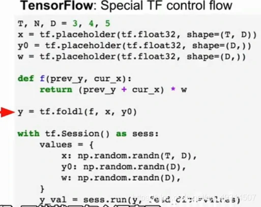 但是在tf中,实现起来比较麻烦,由于我们需要首先构建所有的图,所以这个控制流的循环结构中需要在tf图中设置成一个显示的节点。tf几乎用自己的计算图重构了所有编程语言,任何控制流操作,任何数据结构都需要合并在计算图中,因此我们不能够用熟悉的Python命令在写我们喜欢的风格的代码,我们需要重新学习整个tf定义的的控制流操作方法命令。