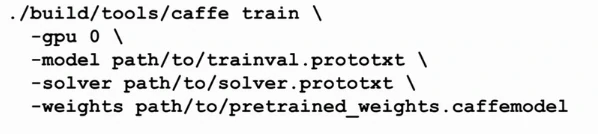 首先将数据格式转换成LMDB格式或者HDF5格式,或者可以将图像文件夹或文本文件夹转换成可以进入caffe的脚本,然后定义计算图的结构,而不需要写代码,只需要修改prototex文件设置计算图的结构。