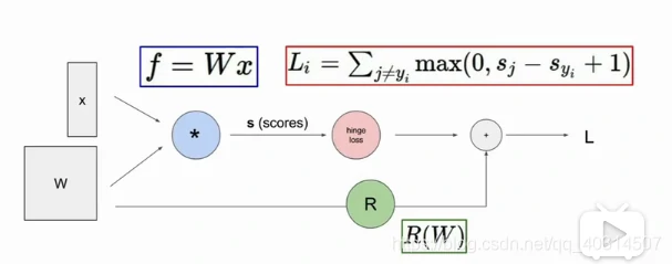 无论何时我们进行深度学习,都要考虑构建一个计算图来计算任何我们想要计算的函数。比如在线性分类器的情况下,我们对数据X和权值W进行矩阵乘法或者做一些Loss函数来计算损失,也会使用一些正则项,我们企图把这些不同的操作拼起来,成为图结构。