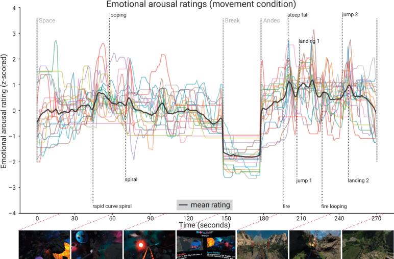 通过 EEG 脑机接口,研究人员记录被试的在体验 VR 场景的脑电波变化,并与他们的兴奋等情绪反馈进行匹配。