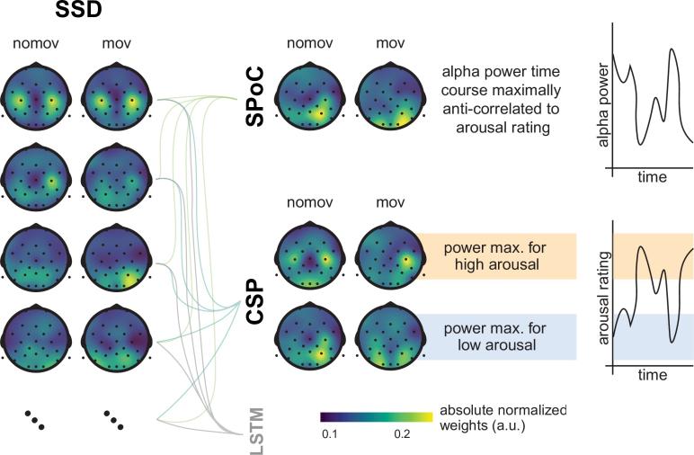 根据脑电数据,该研究验证了 α 力量调节所反映的神经机制——特别是在顶枕区域——也包含了关于一个人经历沉浸式和情绪激发体验的主观情绪状态信息。验证了一个人的情绪激动的程度与 α 振荡有关,其中 α 振荡是指振荡强度越低,人脑的兴奋程度就越高。