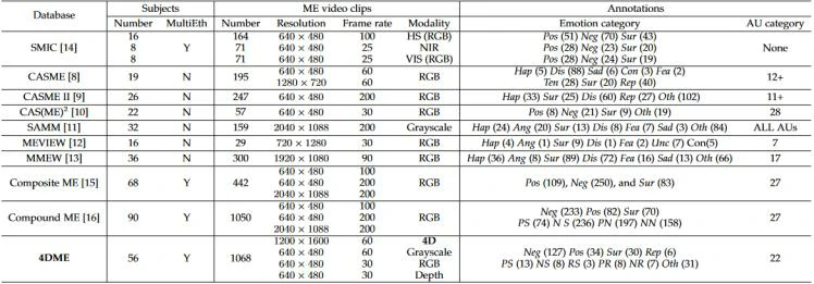 目前的运动估计数据集不足,且大多只包含单一形式的2D彩色video。虽然针对普通面部表情的四维数据的研究已经很活跃,但目前在微表情研究中还没有四维数据。