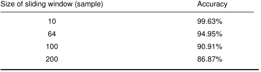 最重要的超参数之一是滑动窗口的大小。这个数字对网络培训及其准确性有着巨大的影响。滑动窗口的不同大小对网络精度的影响如表2所示。从该表中可以看出,网络的精度随着该数字的增加而降低。原因是大窗口包含更多信息。当本文考虑滑动窗口的大尺寸、信息包含噪声以及网络不能很好地训练时,这是可能的。另一方面,滑动窗口的大尺寸减少了训练数据的数量。因此,在本文中,本文选择了10个作为该尺寸。