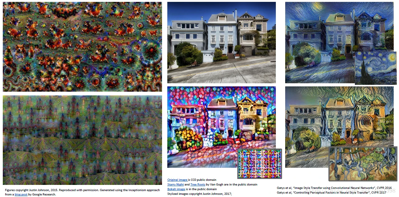 CNN适用于分类、恢复、探测、分割,随着GPU的兴起和互联网数据的增大,CNN现在是无处不在。以风格迁移为例。