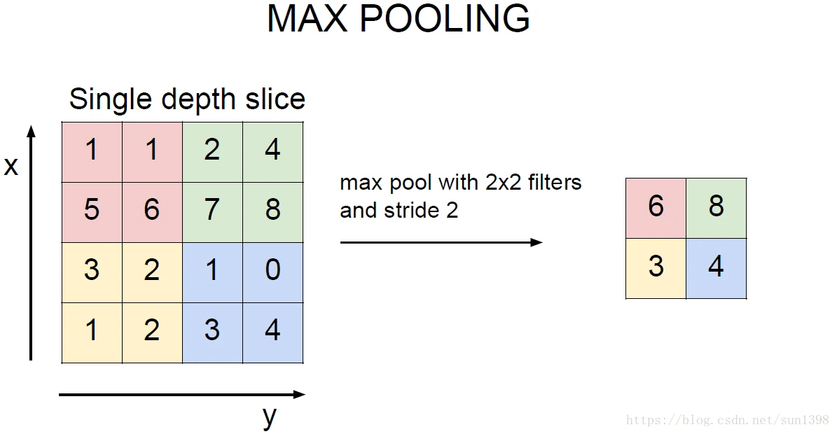 在卷积层尽量保持维度的不变行,但是滤波器数量大的时候,需要经过池化层对数据维度进行降低,与卷积层相同,通常关注池化滤波器大小K以及步长S。