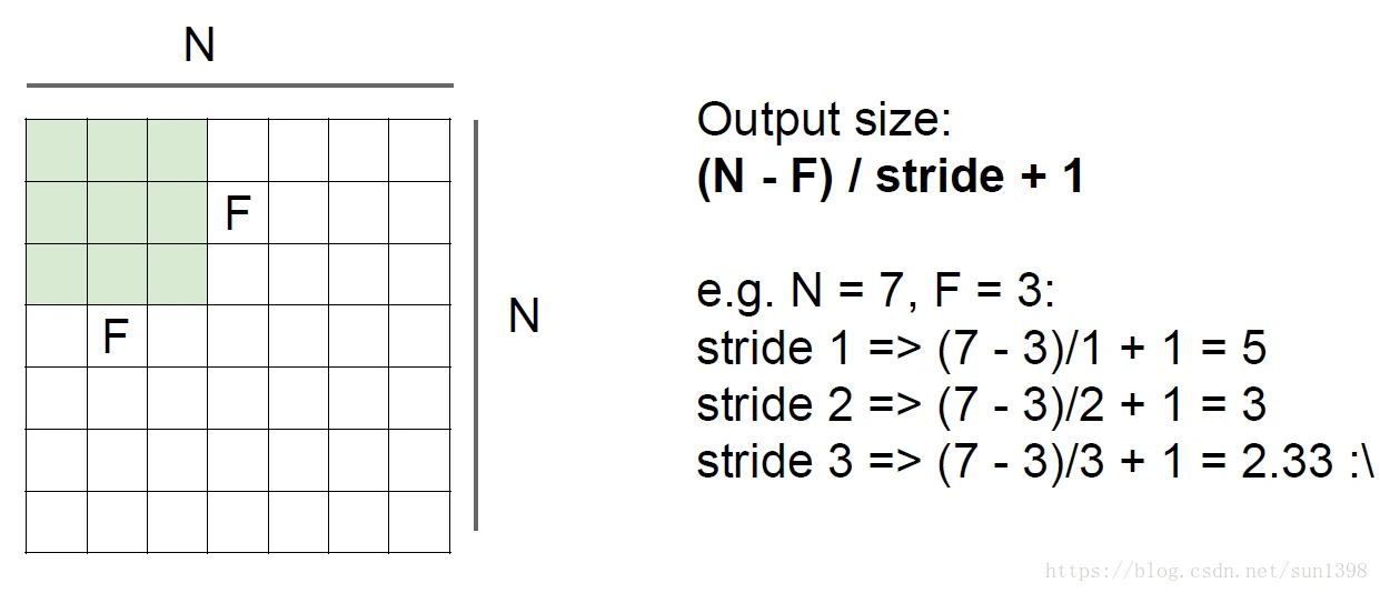 - 经过卷积层后,数据维度变化规律,必须满足输出是整数才能运行,除不尽的情况不合理。