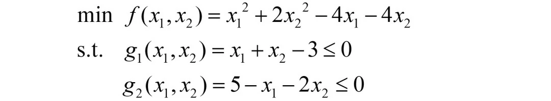注意,这里与数值算例的最小化问题不同,该问题是最大化问题,因此需将约束全部转化为“≥0”的形式,并命名为g1、g2。